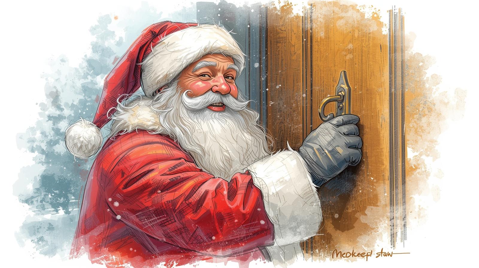 Der Weihnachtsmann schob den Sessel zurück, stand auf und zog sich seinen Wintermantel über. Man sollte ihn ja schließlich auch in der Menschenwelt erkennen und nicht als Betrüger irgendwohin einsperren.